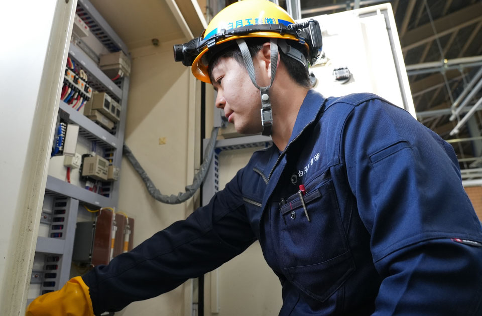 - 現在は工場のメンテナンス工事が主で仕事を行っていますが、将来的には工場やビルの新築案件にも携わりたいと考えています。